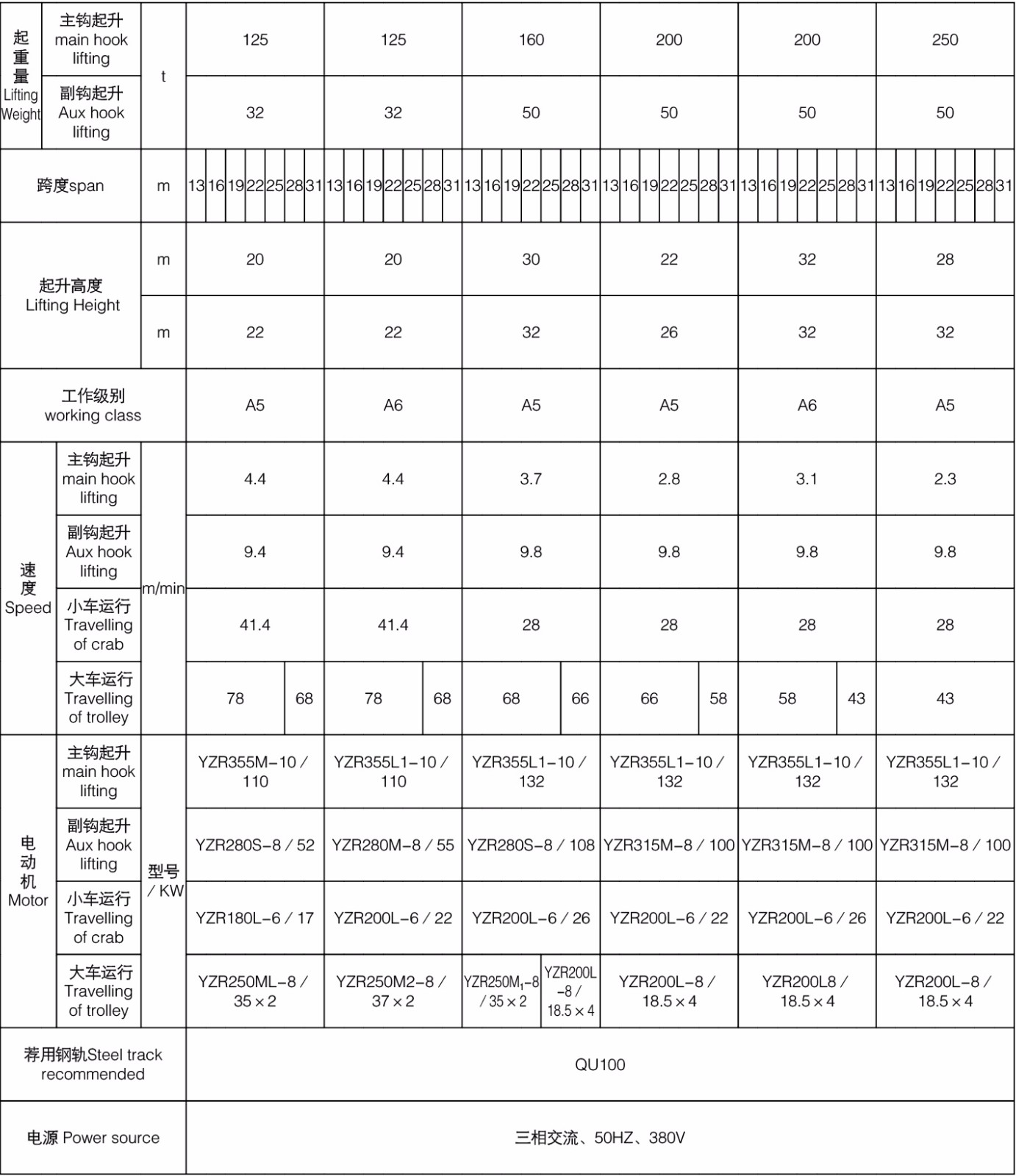 QD型125/32~250/50噸吊鉤橋式起重機(jī)