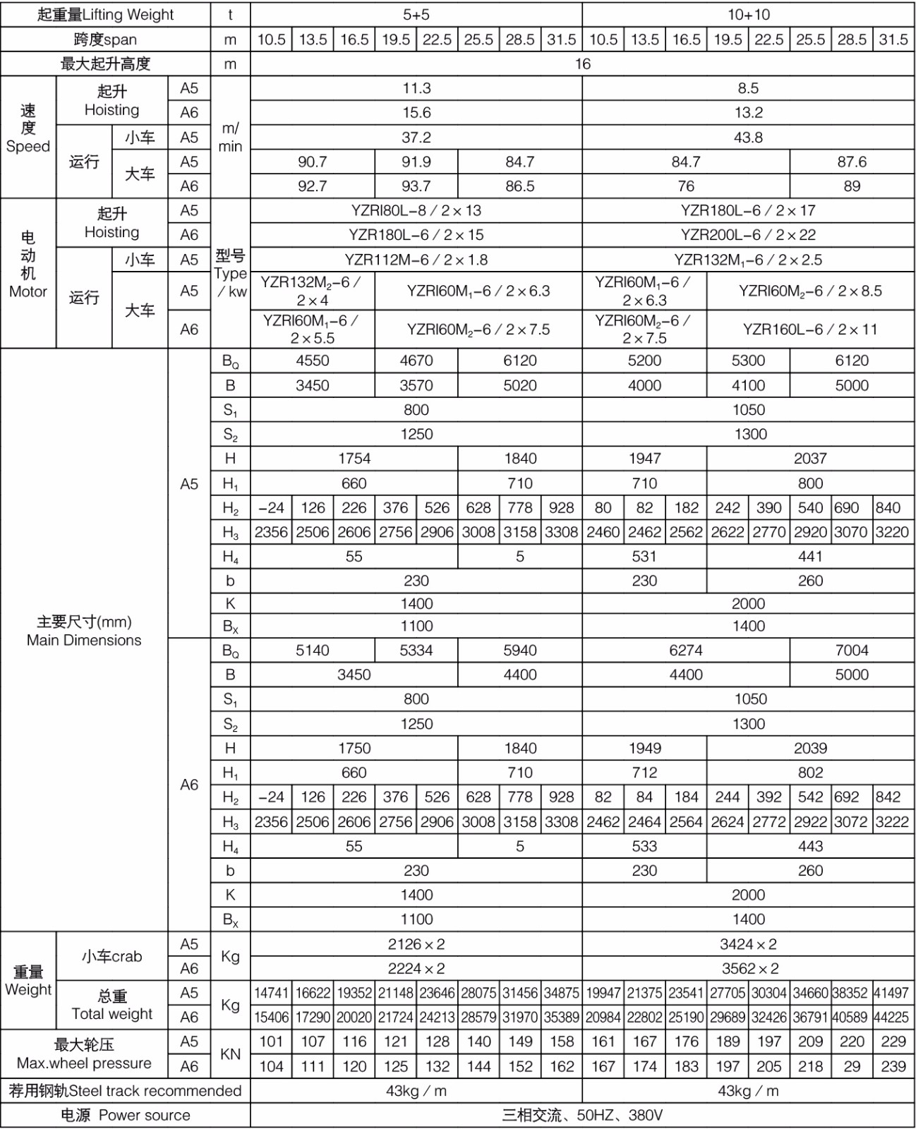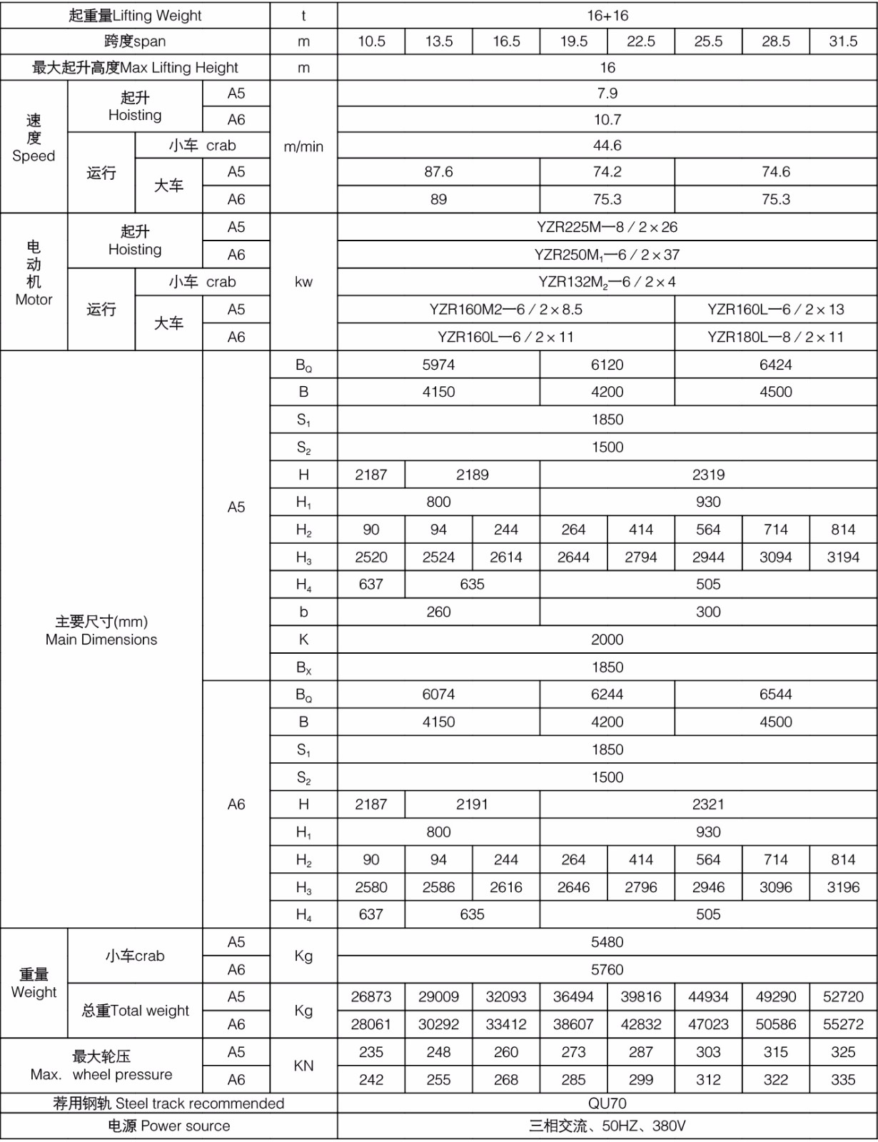 注:1.大車導(dǎo)電有角鋼和安全滑觸線兩種形式,供選擇。