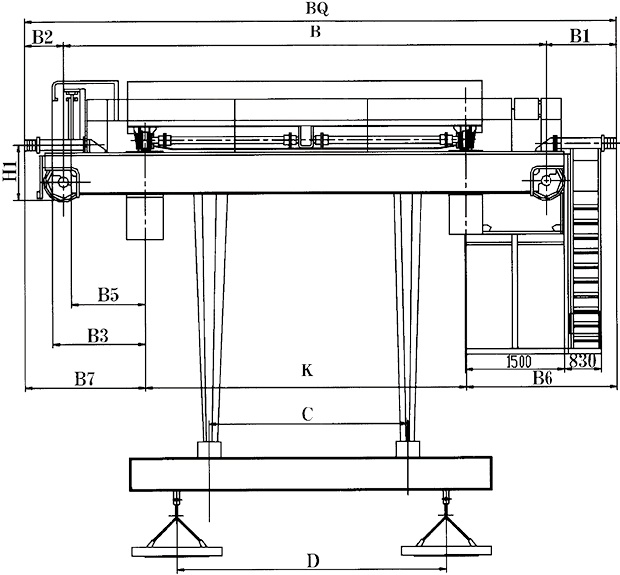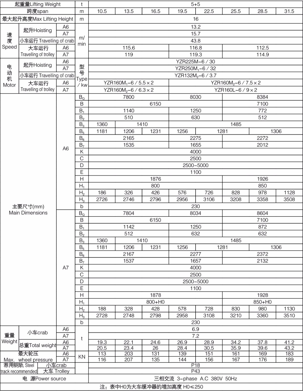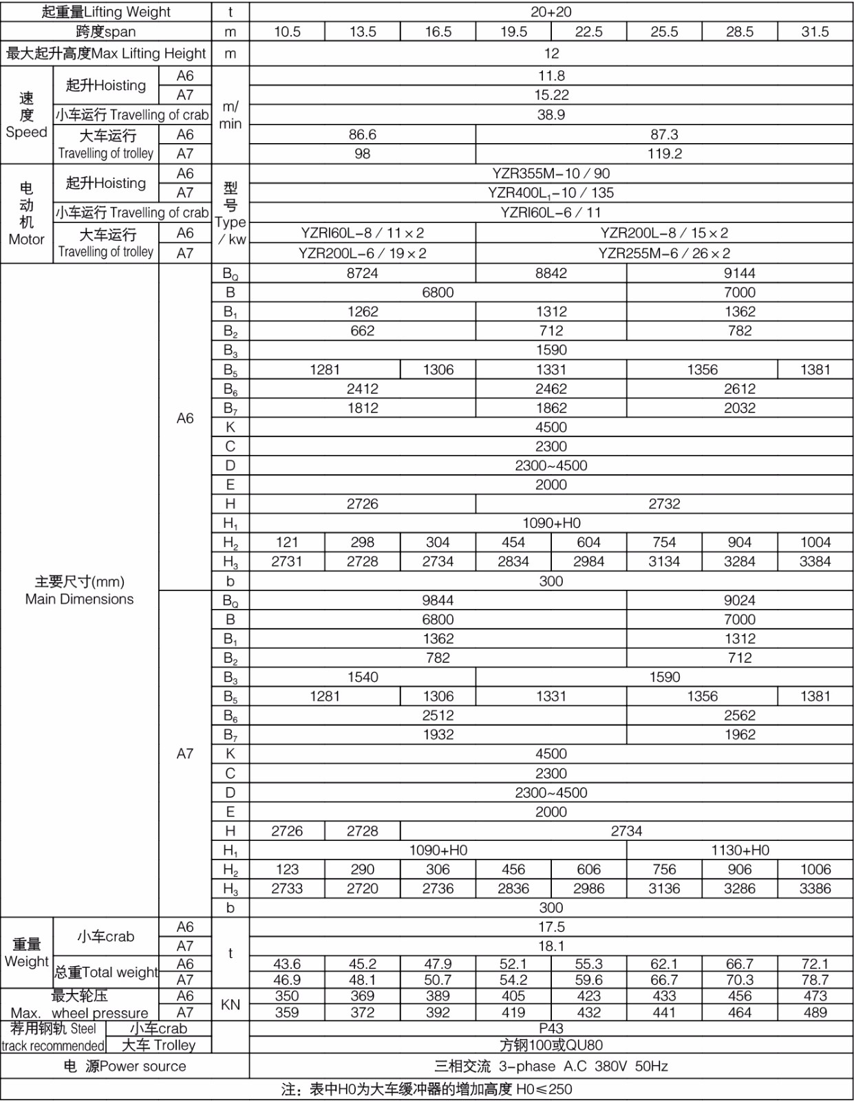 4、掛梁上下吊點(diǎn)距C、D可根據(jù)用戶要求確定,表中尺寸僅供參考。