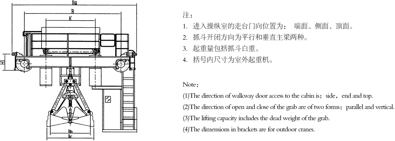 電磁橋式起重機(jī)的基本構(gòu)造與吊鉤橋式起重機(jī)相同,不同的是吊鉤上掛1個(gè)直流起重電磁吸盤,用來(lái)吊運(yùn)具有導(dǎo)磁性的黑色金屬及其制品。通過(guò)裝在司機(jī)室內(nèi)的可控硅直流箱將交流電源轉(zhuǎn)換為直流電源,然后再通過(guò)設(shè)在小車上的專用電纜卷筒,將直流電源用電纜送到電磁吸盤上。